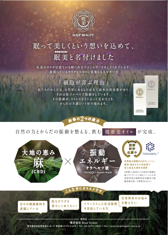 眠美【NEMURIBI】は、『眠って美しくという想いを込めて』作られた自然の力とからだの振動を整える振動エネルギーとの融合で作られた【健康美オイル】です😍