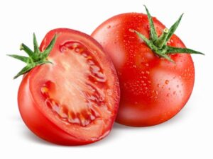 一方は普通のトマト、もう一方はテラヘルツ波を照射した布の上に置いたトマト。